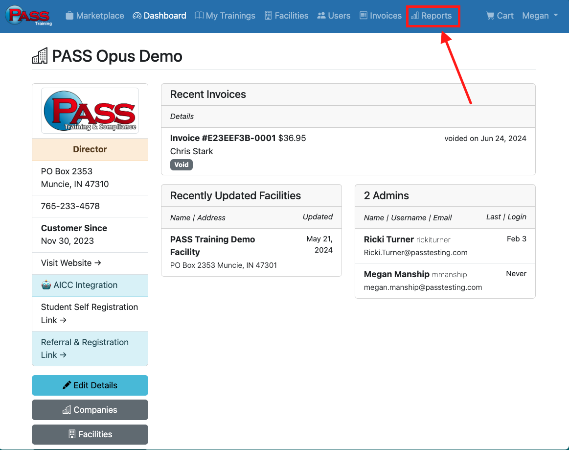 Step 2: Select the "Reports" tab on the blue navigation bar
