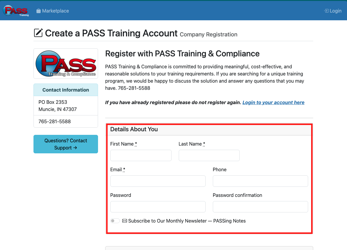 If you have any questions, please contact PASS Testing Support at support@passtesting.com or our Support line at (765)281-5588 Monday through Friday, 8:30 a.m. to 4:30 p.m. EST.