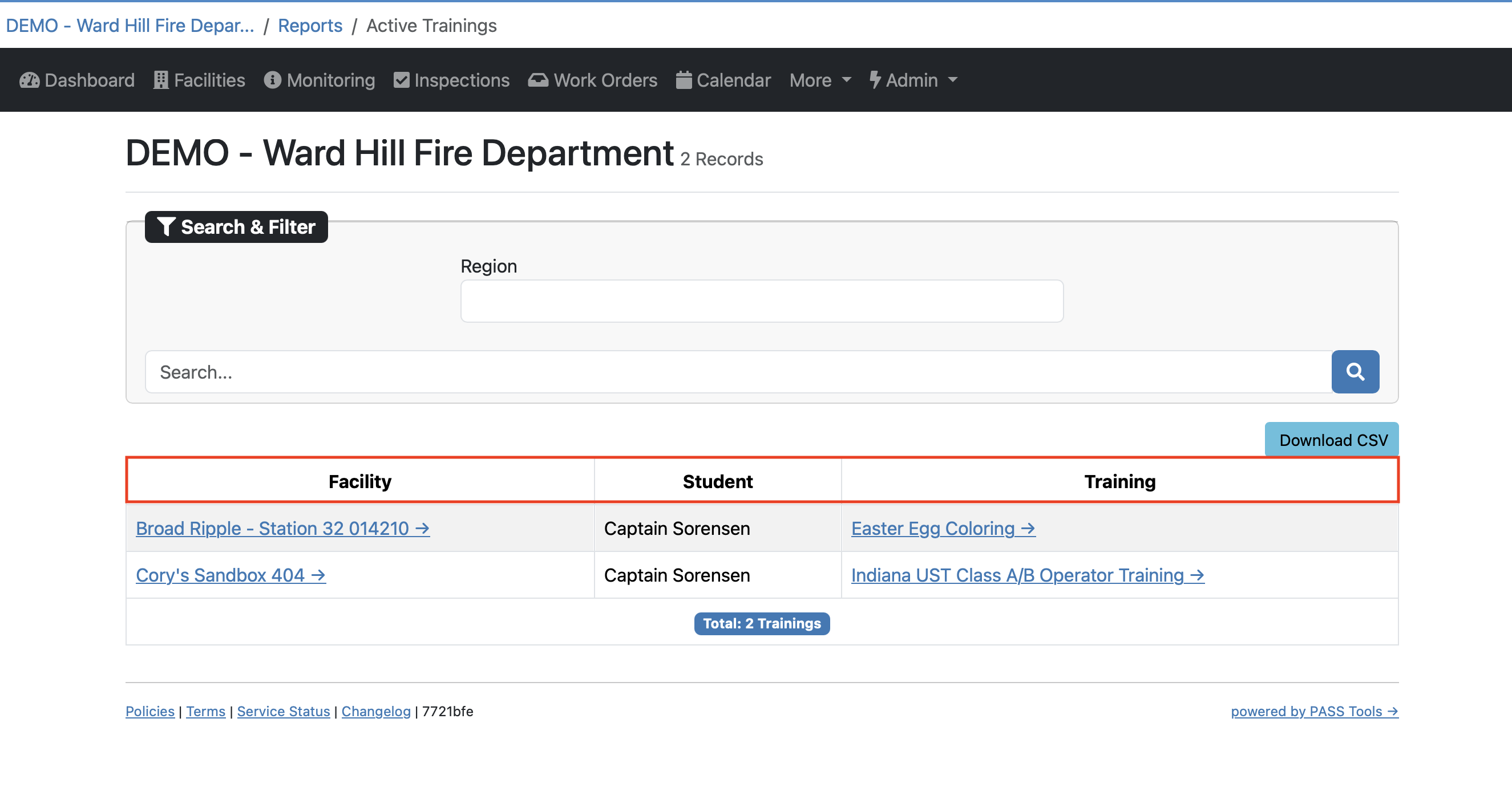 Breakdowns by facility and student make it easier to manage training responsibilities and follow up where needed.