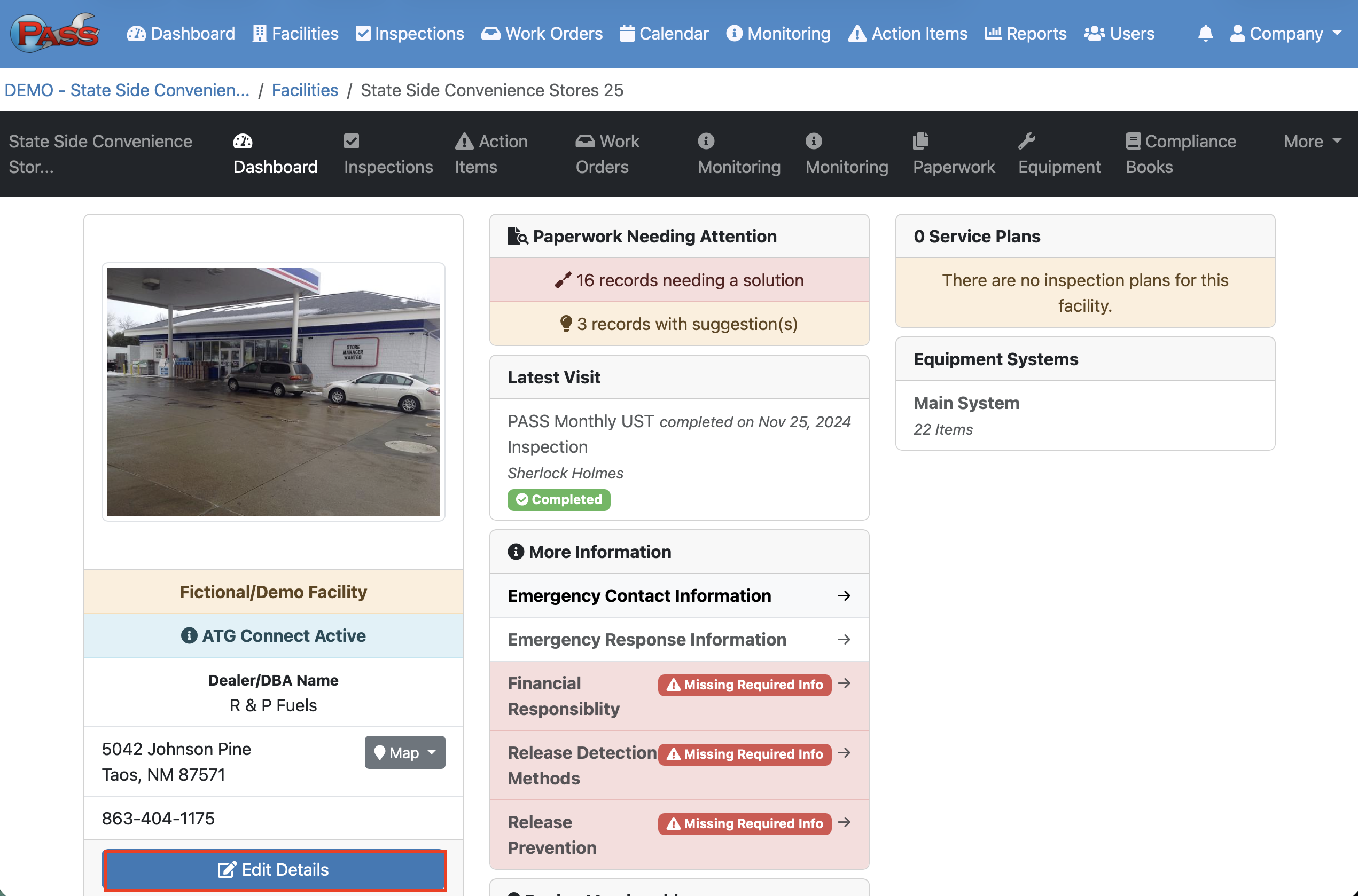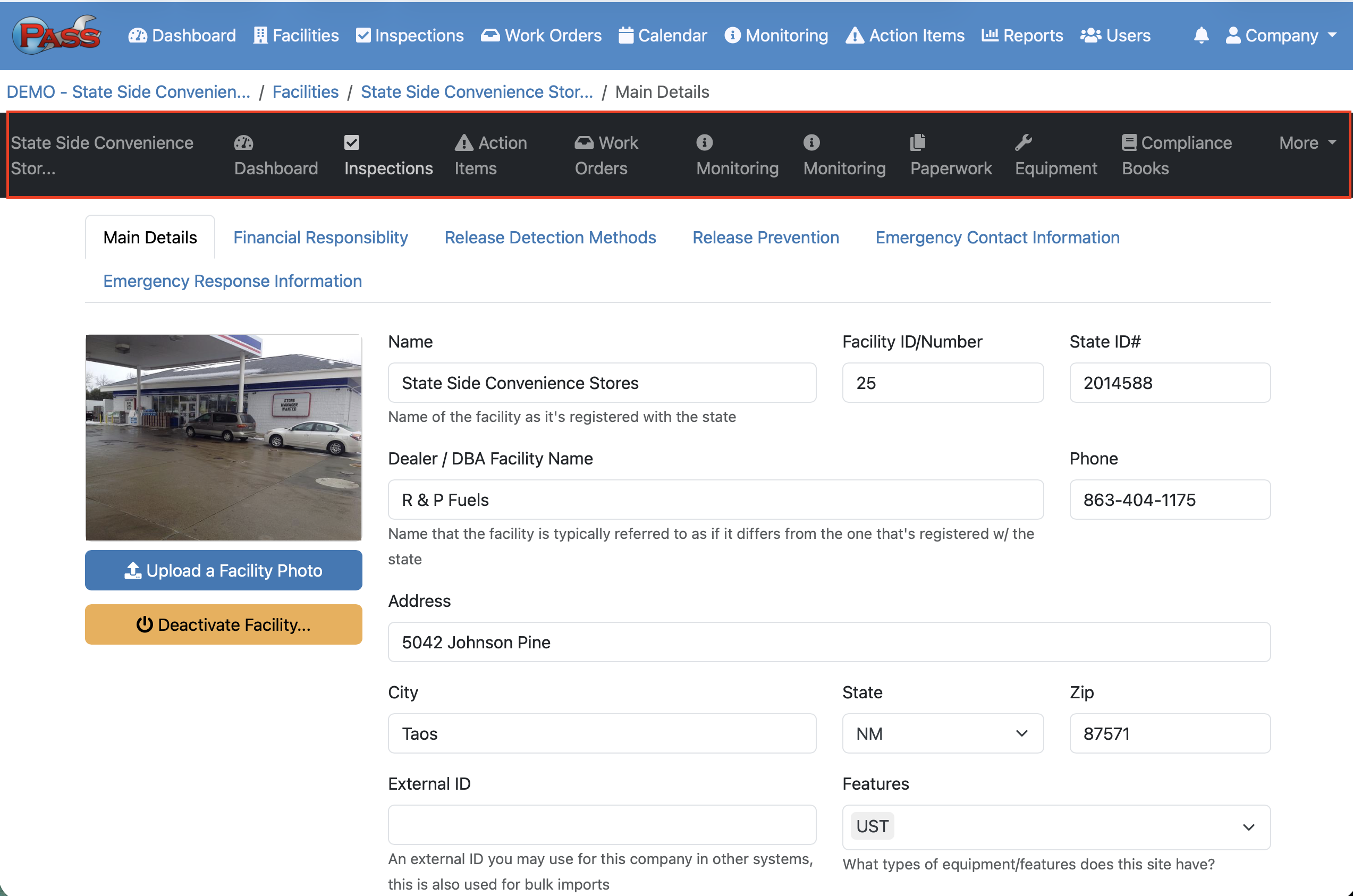 Configuring a Facility in PASS Harmonics involves setting up the details that allow a site to be tracked for compliance, testing, and reporting. This is where you will enter the details for each facility in order to build it in PASS Harmonics for it to be live in our system. Without proper configuration, PASS Harmonics cannot correctly monitor, manage, or report on a site's regulatory requirements. These details can be edited to update the information at any time.